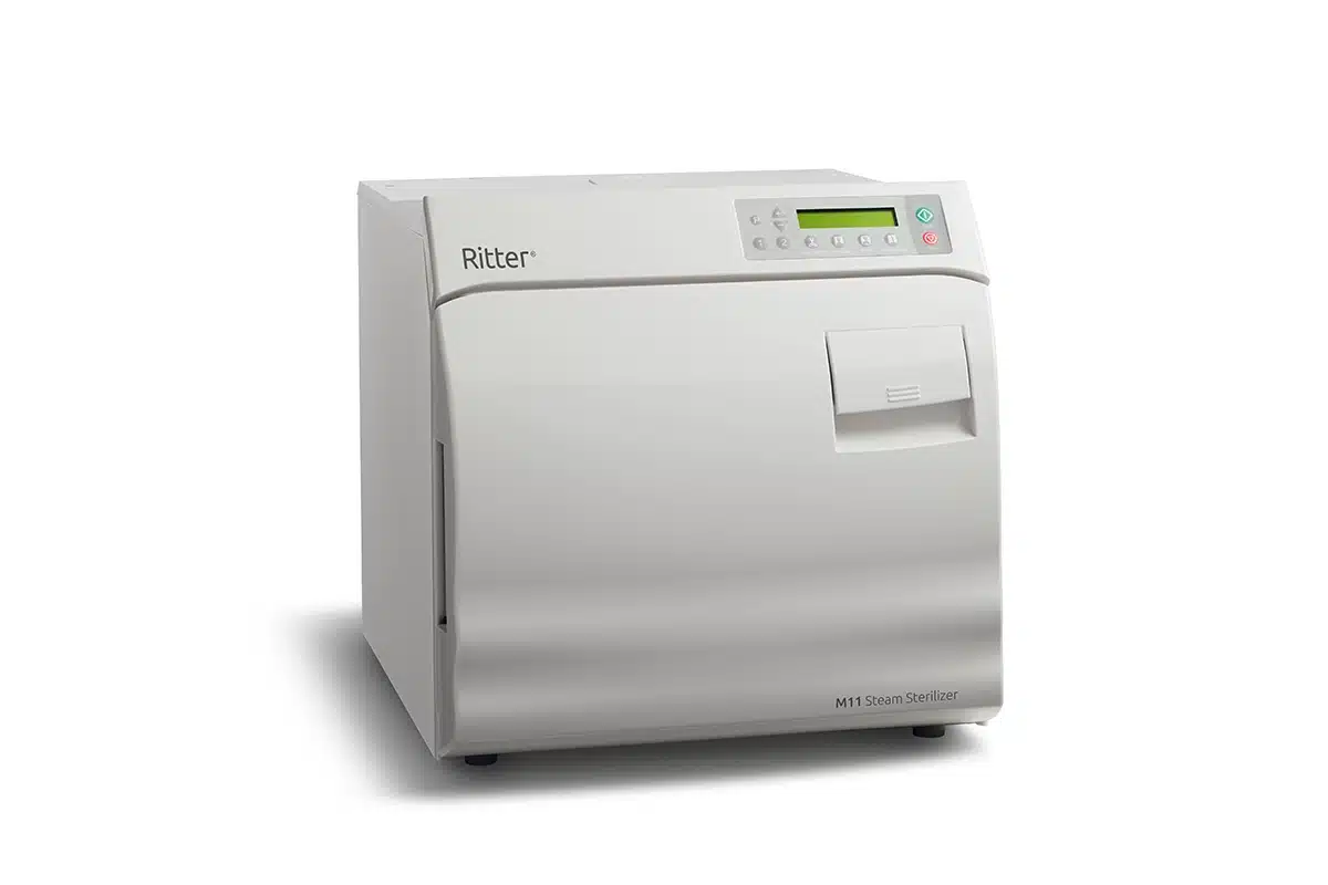 Ritter Midmark M11 Steam Sterilizer – Professionally Refurbished. The M11 Steam Sterilizer is one of the world’s best-selling tabletop Automatic/Electronic Autoclaves. Features include an 11″ diameter chamber with automatic venting. Chamber – 6.5 gal. Usable volume (24.6 liters). It also comes with a 6-month Parts Warranty. See tabs for more information.