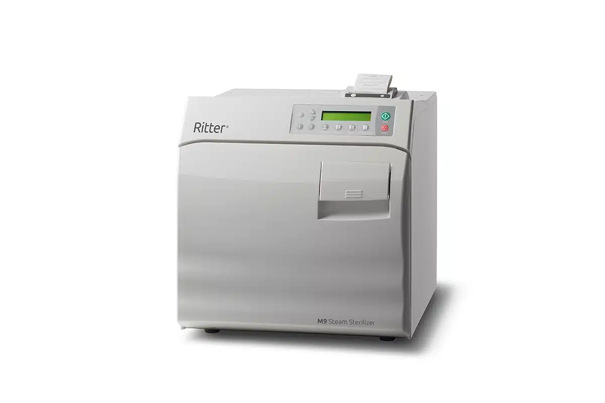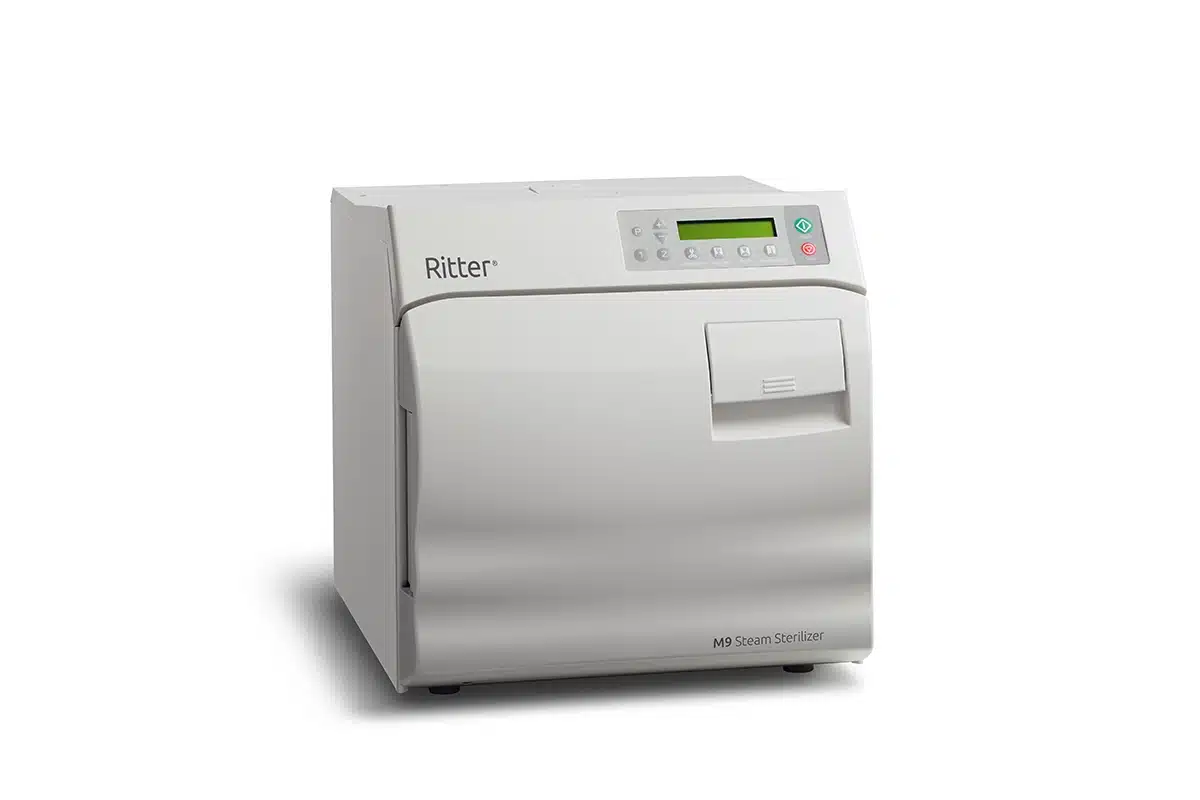 Ritter M9® Steam Sterilizer – Professionally Refurbished. The M9 Steam Sterilizer is one of the world’s best-selling tabletop Automatic/Electronic Autoclaves. Features include a 9″ diameter chamber with automatic venting. Chamber -3.5 gallons with usable volume (13.4 liters). It also comes with a 6-month Parts Warranty.