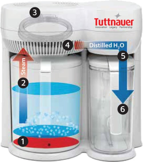 Tuttnauer DS1000 Steam Distiller. Experience the ease and reliability of the Tuttnauer DS1000 Steam Distiller, your go-to solution for producing high-purity water from any tap source. The DS1000 is simple, efficient, and ideal for clinics, labs, or homes needing clean, contaminant-free water.