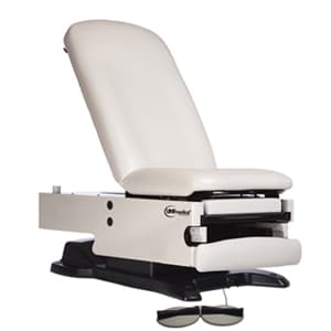 UMF 4070 Power100 Features include a built-in drain pan, foot control, and a front drawer for convenient storage. Removable, seamless upholstery ensures easy cleaning and better infection control. Adjustable stirrups and a front leg cushion add flexibility and comfort. A steel pull-out leg extension enhances support for lower extremity exams. Furthermore, durable steel construction with a powder coat finish ensures long-lasting, easy-to-clean performance.