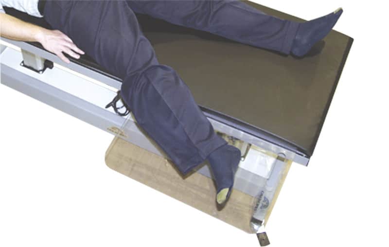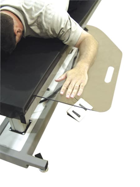 Simple, Easy To Use – Requires No Attachment Hardware.  Slide the Fluoro Extender under the tabletop pad.  Ask the patient to lie down on the table. Position the patient to suit the needs of the procedure. The weight of the patient will hold the Fluoro Extender in place under the tabletop pad. This optional accessory can be used with any Fluoroscopy Table.
