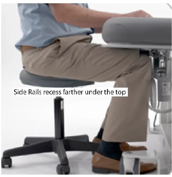 Vascular Table Features: Electric Height Range 19″ – 33″, Trendelenburg (Tilt): ±18º, and Reverse Trendelenburg (Tilt): 0-25º (40º total) + Electric Fowler = 70º. Furthermore, an integrated footboard (split, drop away), Locking Casters, Side Rails (2), and 2 Patient Restraint Straps are included.