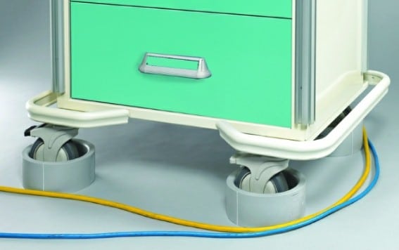 MPD Cart Accessory: Caster Guard TCG-1. The MPD TCG-1 offers reliable protection for your medical cart’s wheels and surrounding areas. Designed for durability and ease of use, this caster guard fits both MPD Select and Standard Carts. It helps prevent damage to walls, doorways, and cart wheels in fast-paced clinical environments.