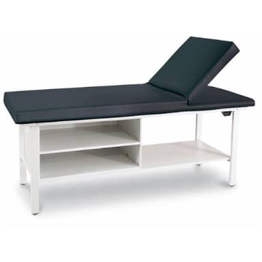 Winco’s 8570C1 Treatment Table Features: The Adjustable Backrest is a gas spring operated and uses a ‘one-touch’ adjustment control. Standard 30″ height. Cabinet module and shelf included. High-strength steel frame and legs support up to 400 pounds.  The 8570C1’s structure features a  powder-coated neutral gray. 2″ medium density foam is upholstered in heavy gauge expanded vinyl. Includes high-impact leveling feet and holder for 21″ x 3″ roll paper.  This unit comes fully assembled.