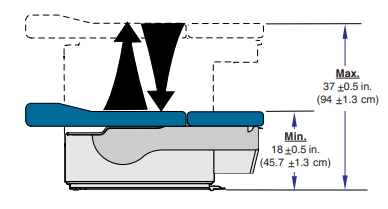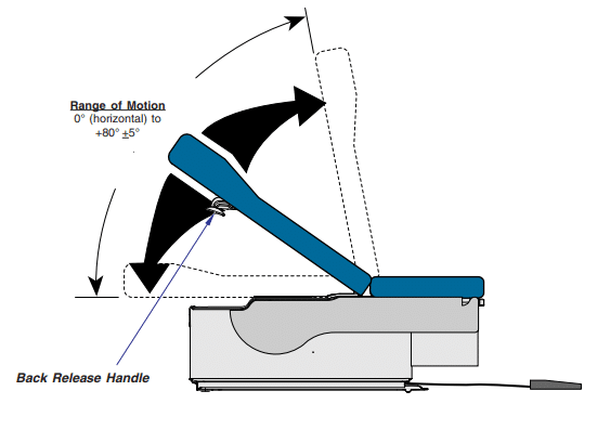 Midmark 622 Exam Table – Features: This exam table has a minimum height of 18″, which allows easy entry and exit by even the most challenged patients. Additionally, the 18″ low height conforms to ADA standards. The table also rises to a maximum of 37″. The Midmark 623 accommodates patients up to 400 lbs. This power exam table includes a footswitch for operating the powered height adjustment.