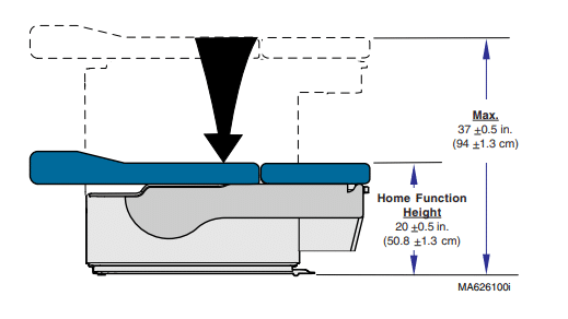 Midmark 623 Exam Table – Features: This exam table has a minimum height of 18″, which makes for easy entry and exit.  Additionally, the 18″ low height conforms to ADA standards.  The table also raises to a maximum of 37″.