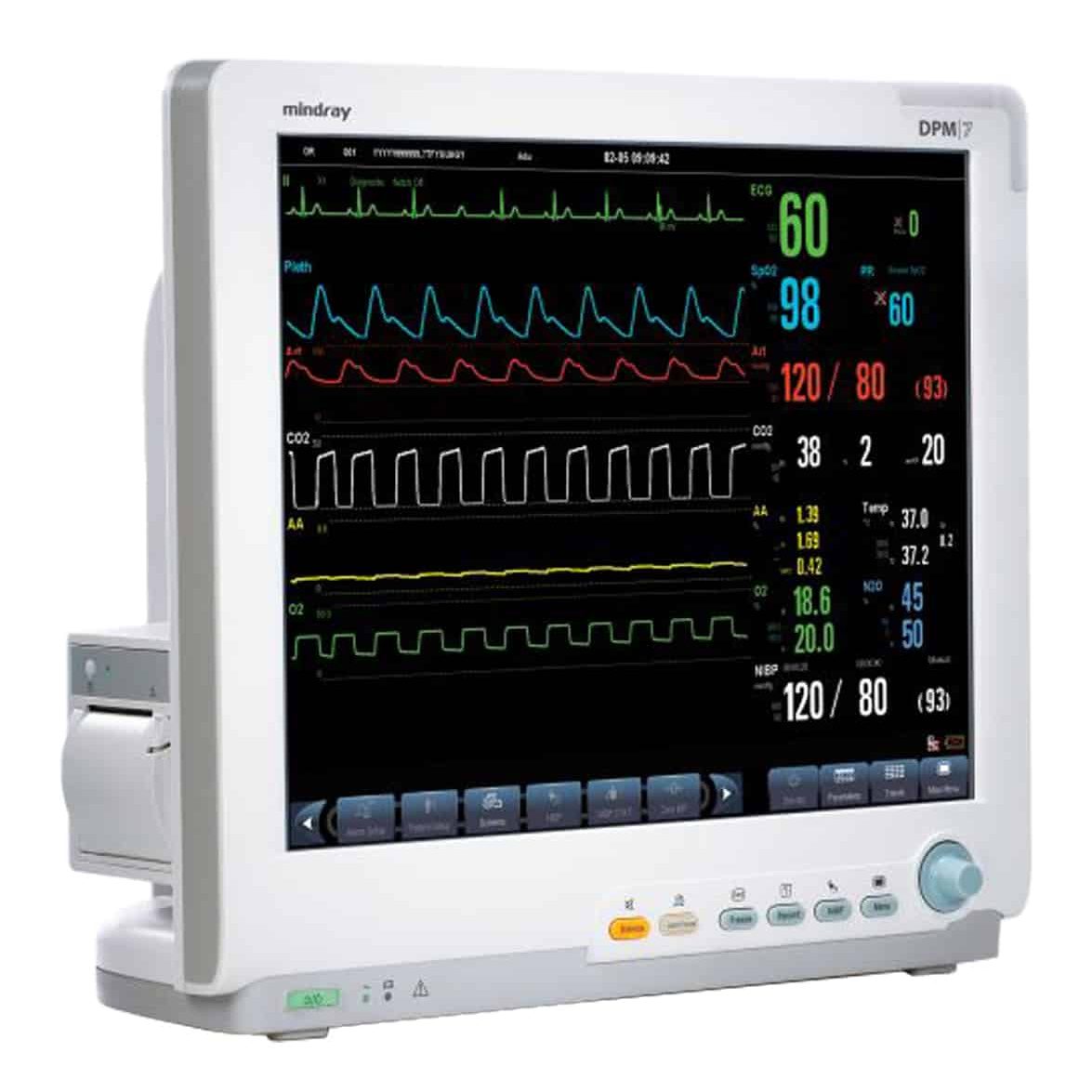 Designed with flexibility in mind, the Mindray DPM7 offers independent display configurations for customized patient data views, making it ideal for anesthesiologists, surgeons, and perfusionists. Standard features include 3/5-lead ECG, non-invasive BP, Masimo SET® SpO2, dual-channel IBP, temperature, and integrated recorder.