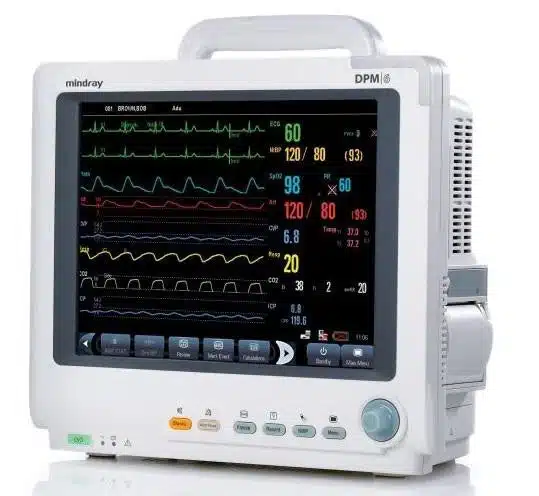 The Mindray DPM 6 Patient Monitor w/ CO2 is designed to meet the needs of the ICU and operating room, offering advanced features such as multi-vector Arrhythmia and ST analysis, Cardiac Output (CO), Continuous Cardiac Output (CCO/SVO2), CO2 monitoring, up to 8 invasive blood pressure measurements, and 5-agent multi-gas analysis with automatic identification and data storage capabilities.