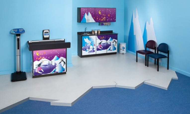 Clinton’s Cool Pals Complete features friendly characters like a polar bear and seals on an iceberg. Transform any exam room into an Arctic adventure with Clinton’s Imagination Series Cool Pals Scale Table and Cabinets. The package includes complimentary paint color, floor covering recommendations, and floor plans (10′ x 10′ and 12′ x 12′). The sink (022) is an optional addition, not included in the package price.