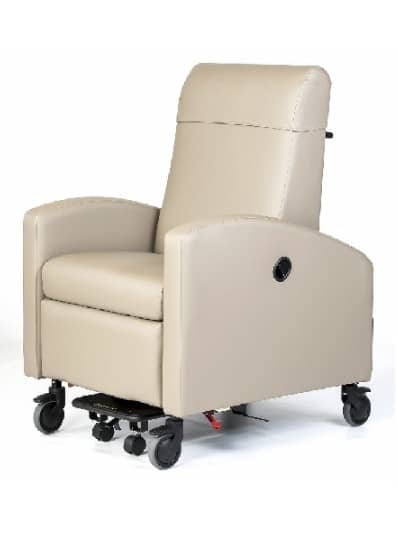 Patients Can Truly Sleep Through The Night! Thousands of documented hours of feedback create the ideal blend of daytime luxury and nocturnal comfort. The Inverness 24-Hour Treatment Recliner™ offers comfort and utility for all treatment applications. This superbly crafted recliner features patent-pending innovations for patient and clinician comfort, providing a new clinical seating experience with intuitive, practical, and durable features. Note: The image shows the Optional Side Table, sold separately.