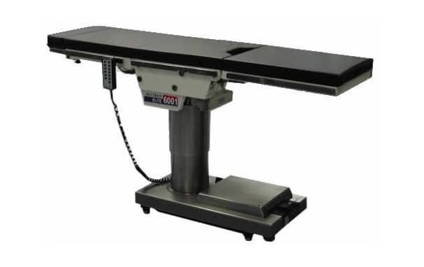 Skytron 6001 Operating Table | Refurbished. The Skytron 6001 is a modern surgical table with a 500-lb weight capacity (in normal position). Furthermore, the 6001 has a 180º tabletop rotation. The table also has North American side rails that fit most accessories. Note: Please see “Options” below for additional accessories.