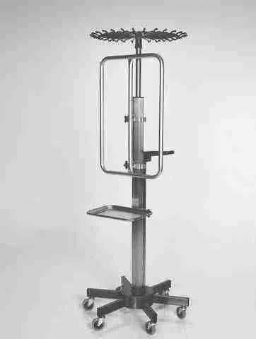 MCM 253 Lift Assist I.V. pole. Mid Central Medical is an American company committed to manufacturing the highest quality medical equipment to serve the demands of America’s healthcare industry. In addition, the MCM253 Lift Assist I.V. Pole (shown) with 28-Hook Top, easily lifts heavy loads by simply turning the crank, eliminating back injuries!