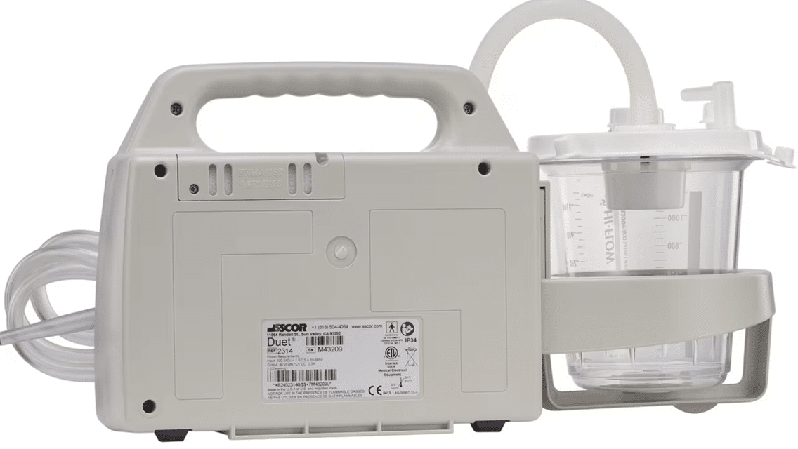SSCOR Duet 2314 Portable Aspirator Suction Unit – Refurbished is built for versatility and performance in critical care environments. Perfect for hospital crash carts, patient transport, surgical center backup, and long-term care facilities.