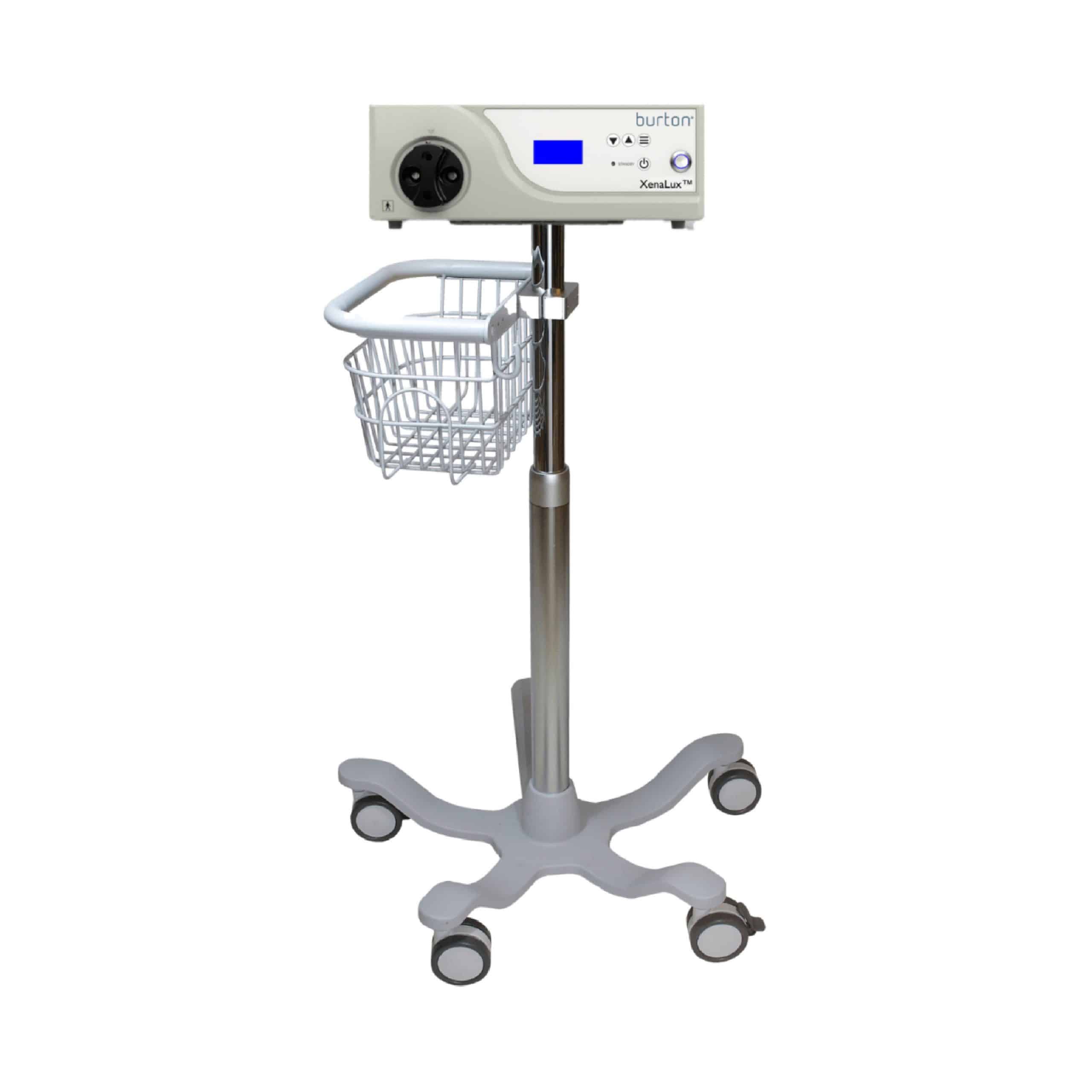 The Burton XenaLux 880300 Mobile Light Source Stand for the XenaLux Xenon Lamp Illuminator provides stable, vertical support for surgical lighting equipment. This accessory securely holds the illuminator while allowing convenient positioning in operating rooms and procedure suites. Moreover, the mobile design improves flexibility during procedures. As a result, clinicians can reposition the light source quickly without disrupting workflow.