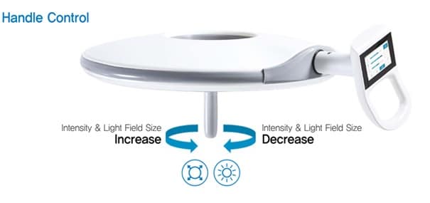 Additionally, the 96 LEDs in each light head produce up to 160,000 lux in a pattern that can be adjusted from 7.8” to 11.8”. The Luvis Surgical Light also features a control panel synchronized with a sub-handle, allowing the user to operate it easily during surgery. Furthermore, smart Sensors automatically detect obstacles in the light field and increase intensity to compensate for reduced light.
