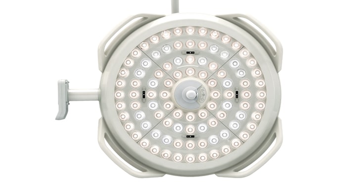 The 54 LEDs in each M200 light head produce up to 120,000 lux in a pattern that can be adjusted from 7.8” to 11.8”. The Luvis M200 Surgical Light also features a control panel synchronized with the sub-handle, allowing the user to easily access it during surgery.