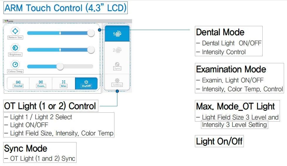 See Gallery Image to illustrate the on-board control panel and the features offered. The Luvis S300 LED is also available in a dual-head or single-head configuration. Moreover, see tabs for more information.
