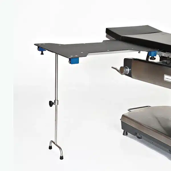 MCM 321 Features: A Tee Foot and comes complete with a 2″ Thick Pad. It clamps securely to the Operating Table with MCM’s integrated Posi-Lock Clamps. The operating surface accommodates a wide range of procedures. Furthermore, the Hourglass Shape Expands the Ends of the Table to 24″ to enhance the Surgeon’s Comfort. Moreover, it is Radiolucent, offering Excellent C-Arm Imaging Quality.