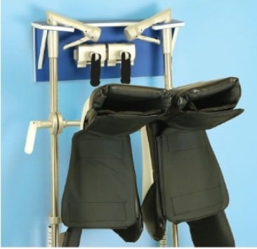 SchureMed Stirrup Wall Rack: 800-0284. The wall-mounted stirrup rack conveniently stores two surgical stirrups, boot liners, clamps, and other accessories. It instantly improves storage in the OR suite, keeping essential tools organized and easily accessible for OR staff. Its durable design ensures long-lasting use, while the compact size helps optimize available space. The rack also promotes efficiency by reducing clutter and providing a clear, orderly storage solution in high-traffic surgical environments.
