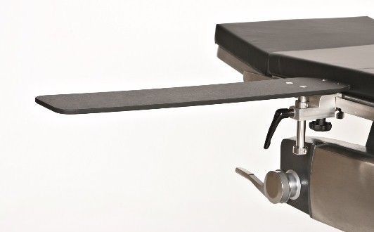 The MCM 401 armboard has a low-profile, easy-to-use design. It rotates 180° and adjusts in height without tools. It quickly locks to standard OR side rails with a simple knob turn, staying secure during use. Furthermore, its radiolucent material allows clear C-arm and X-ray imaging, making it a great fit for today’s surgical rooms.